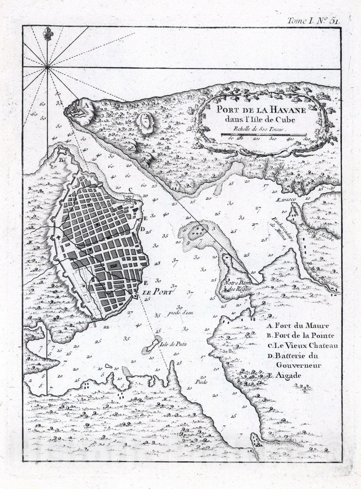 Historic Map : Havana (Cuba), 1764 Port de la Havane dans I'isle de Cube. , Vintage Wall Art