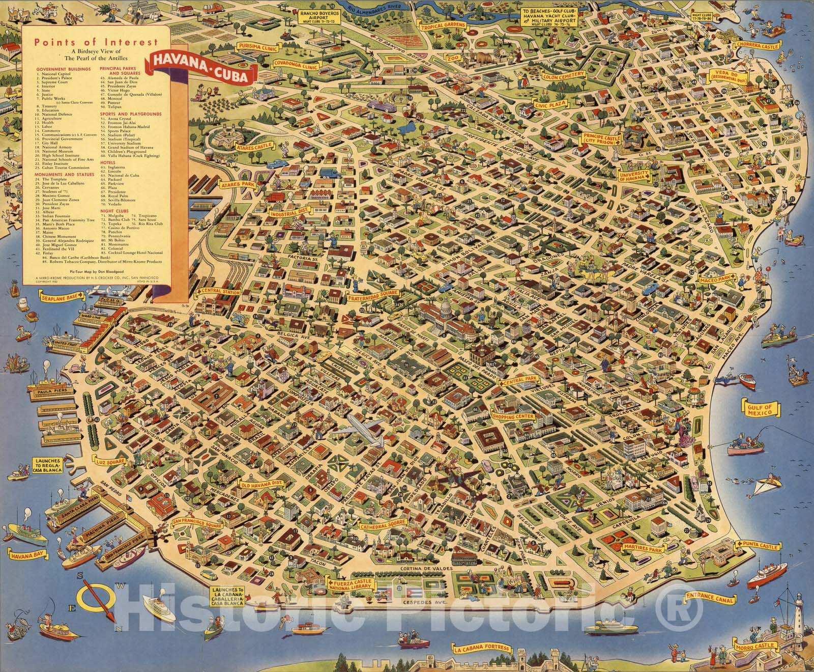 Historic Map : A Pic-Tour Map of Havana. Where to go - What to do - How to see, 1952 - Vintage Wall Art