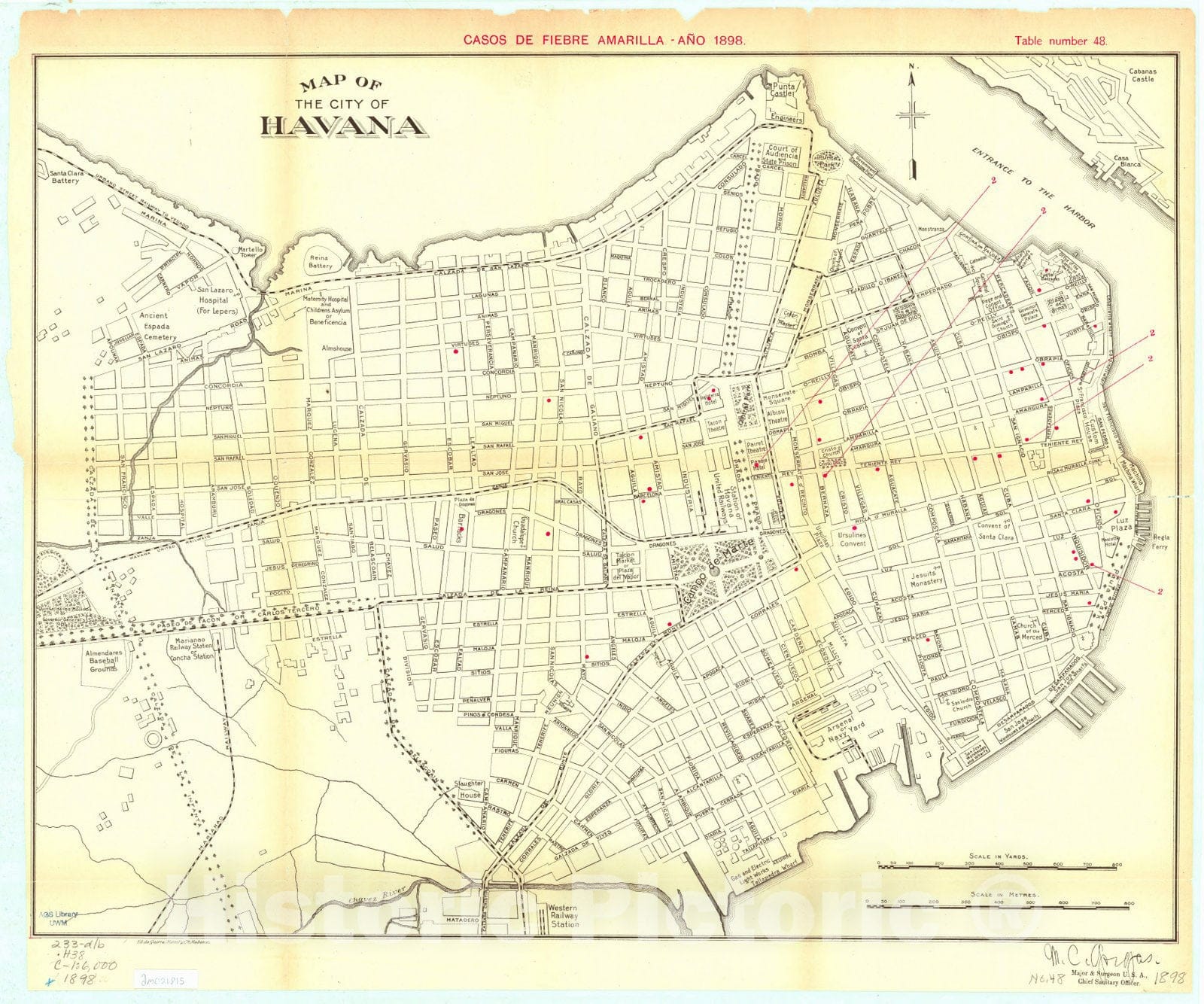 • Map : Havana, Cuba 1898, Map of the city of Havana : Casos de fiebre amarilla, ano 1898 , Antique Vintage Reproduction