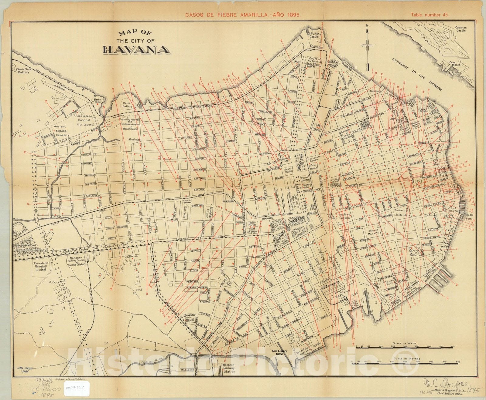 • Map : Havana, Cuba 1900, Map of the city of Havana : Casos de fiebre amarilla, ano 1895 , Antique Vintage Reproduction