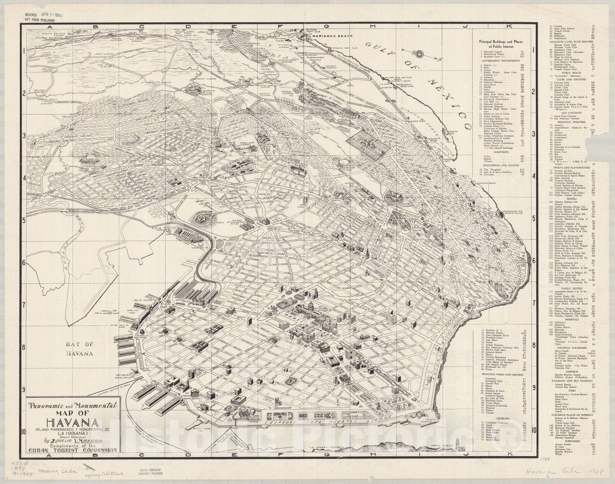 Panoramic and monumental map of Havana : = (Plano panoramico y monumental de La Habana) / drawn specially by Rogelio L. Mirabal ; compliments of the Cuban Tourist Commission