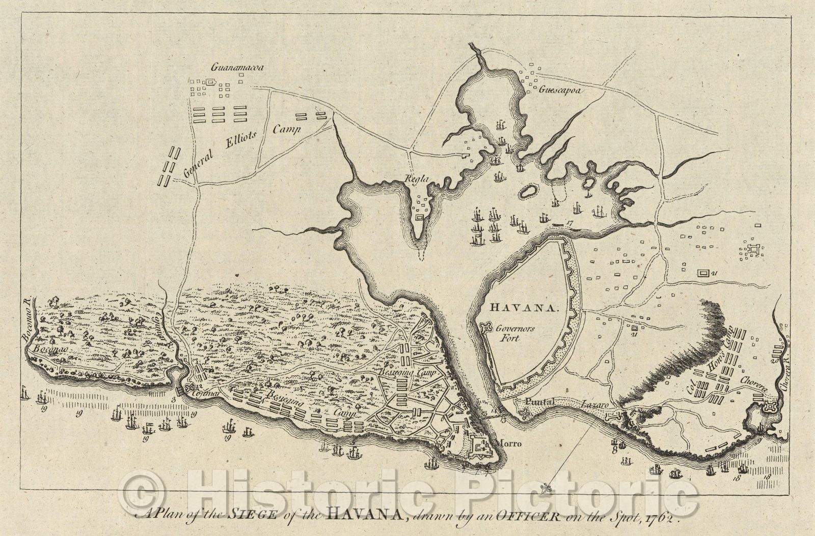 Historic Map : A Plan of the Siege of the Havana, drawn by an Officer on the Spot, 1762., 1762 , Vintage Wall Art