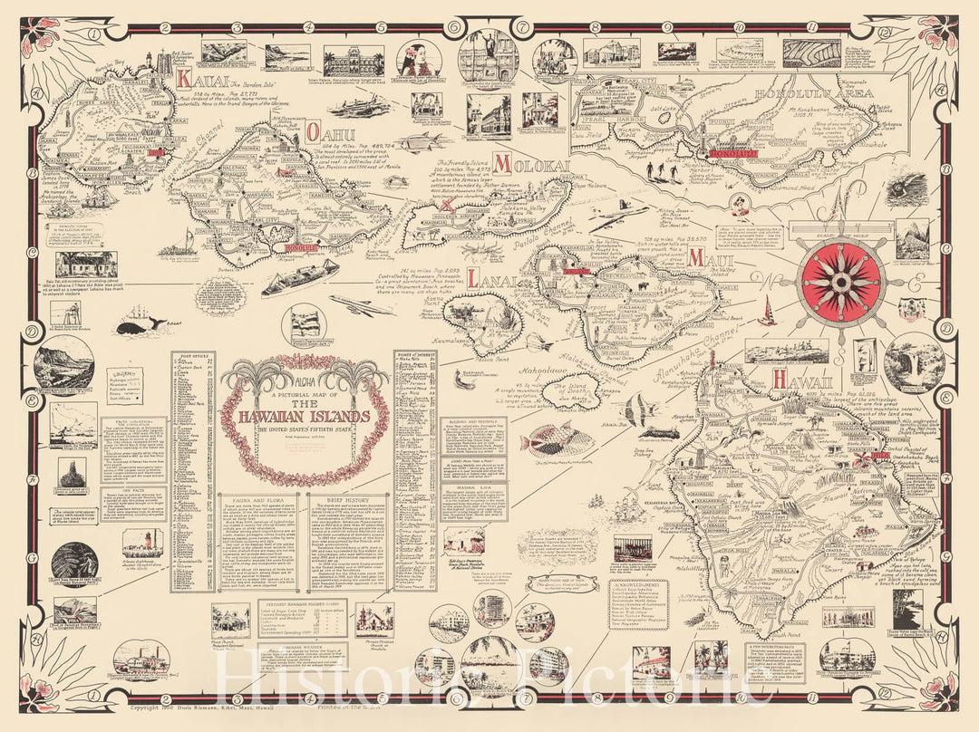 Historic Map : A Pictorial Map Of the Hawaiian Islands The United States Fiftieth State, 1960, Ernest Dudley Chase, Vintage Wall Art