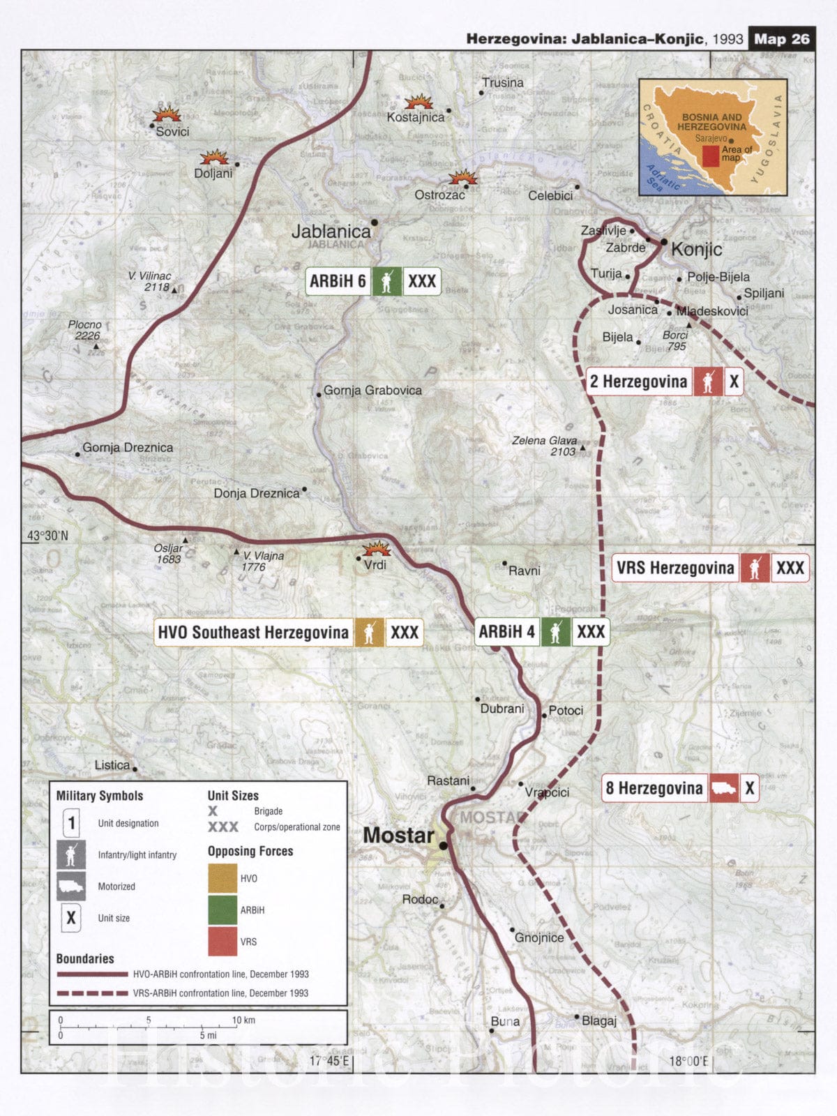 Historic 2002 Map - Balkan battlegrounds - Herzegovina: Jablanica-Konjic, 1993