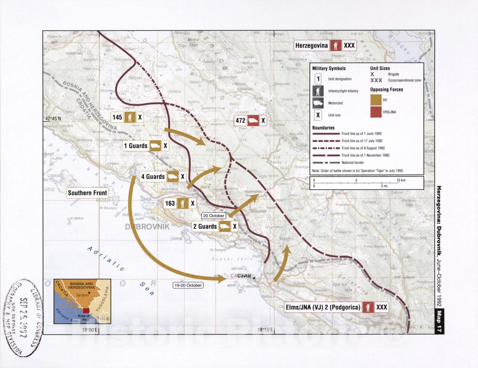 Historic 2002 Map - Balkan battlegrounds - Herzegovina: Dubrovnik, April-June 1992