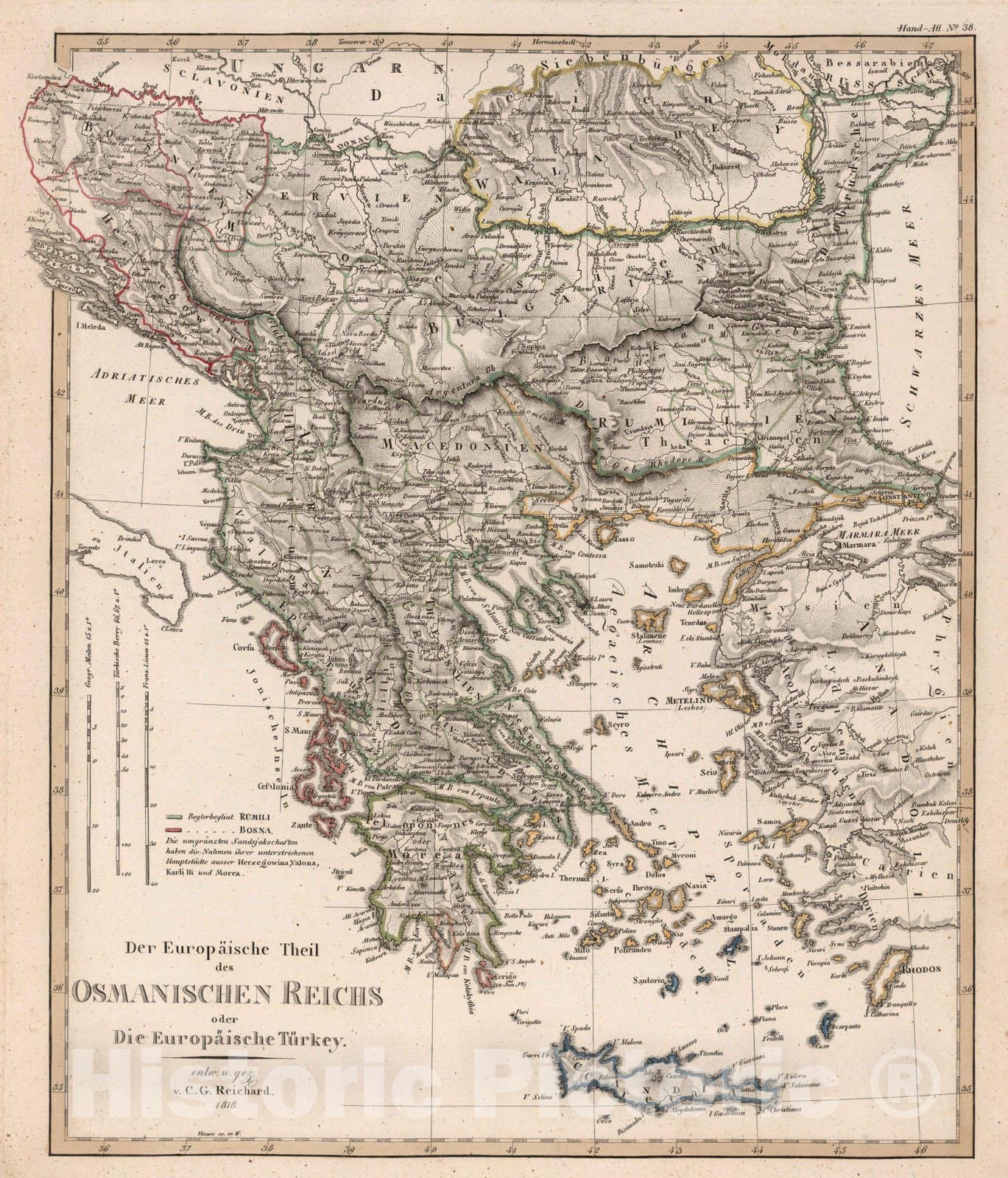 Historic Map : Turkey; Bosnia and Herzegovina, 1818 Der Europaische Theil des Osmanischen Reichs oder Die Europaische Turkey , Vintage Wall Art