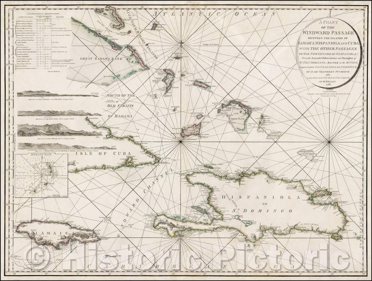 Historic Map - A Chart of the Windward Passage Between the Islands of Jamaica, Hispaniola and Cuba, with the Other Passages to the Northward of Hispaniola, 1795 - Vintage Wall Art
