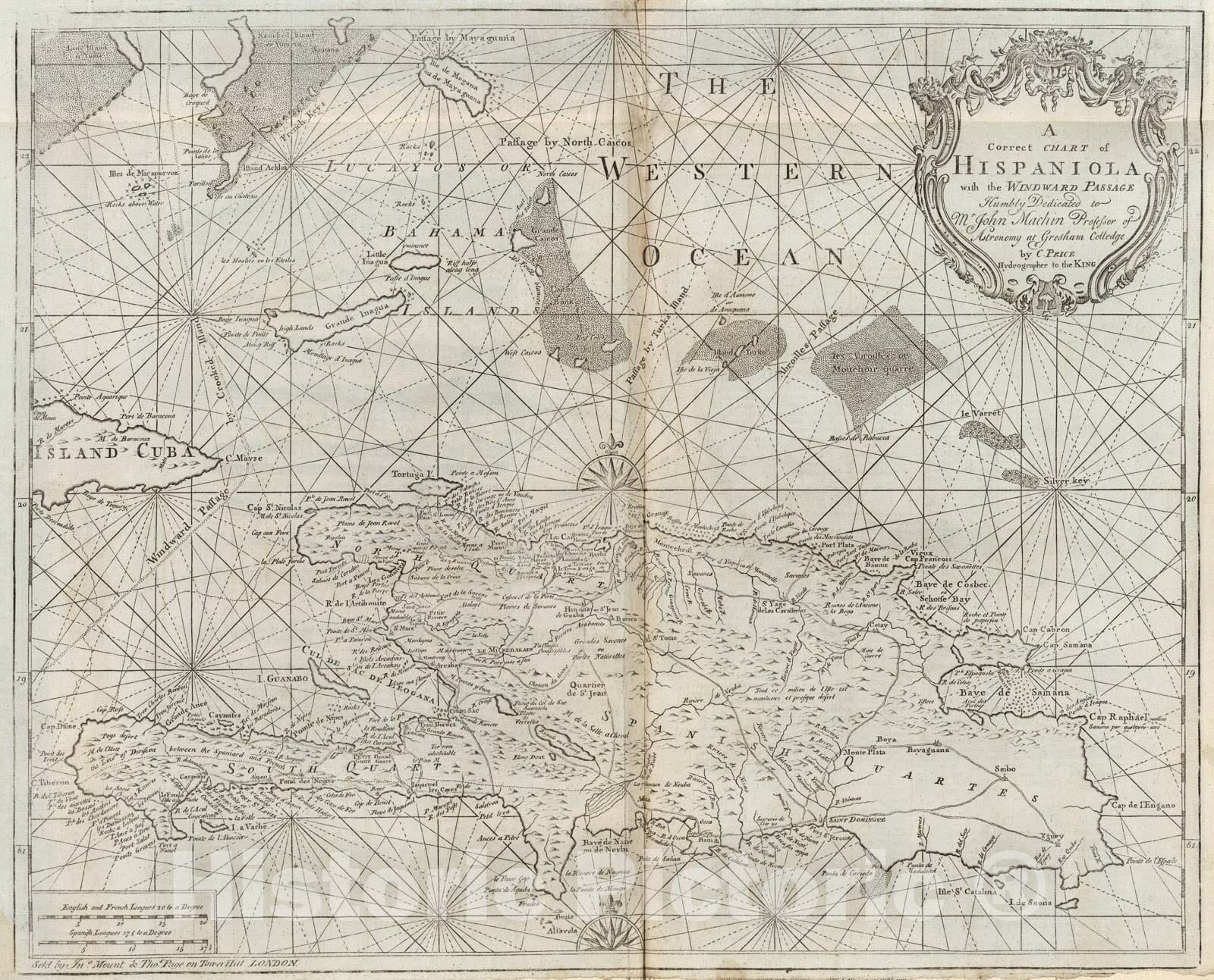 • .Historic Map : A Correct Chart of Hispaniola with the Windward Passage, 1740, Charles Price, Vintage Wall Art