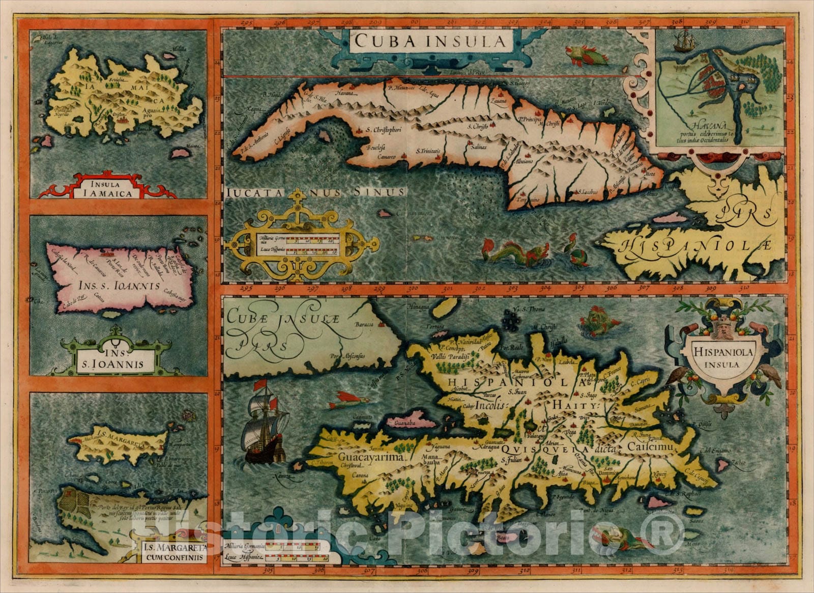 Historic Map : Cuba Insula with Hispaniola Insula with Insula Jamaica with Ins. S. Ioannis with I.S. Margareta Cum Confiniis, 1636, , Vintage Wall Art