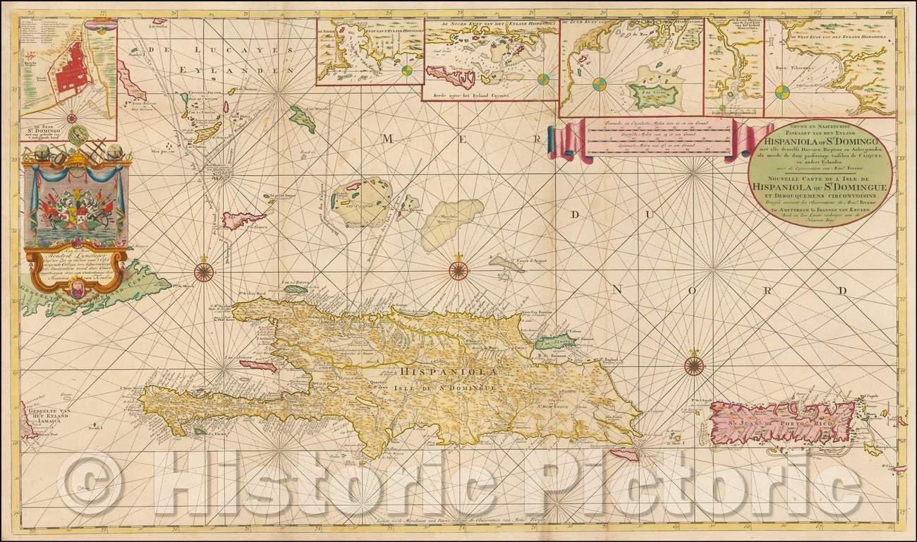 Historic Map - [Puerto Rico & Hispaniola] Nieuwe en Naaukeurige Paskaart van Het Eyland :: New and Naaukeurige Sea chart, 1742 - Vintage Wall Art