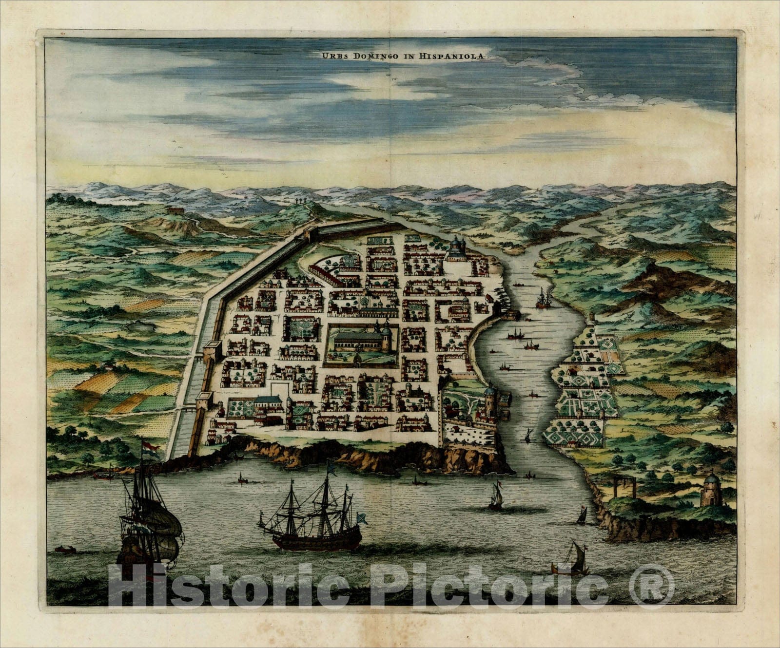 • .Historic Map : Urbs Domingo in Hispaniola, 1671, John Ogilby, Vintage Wall Art