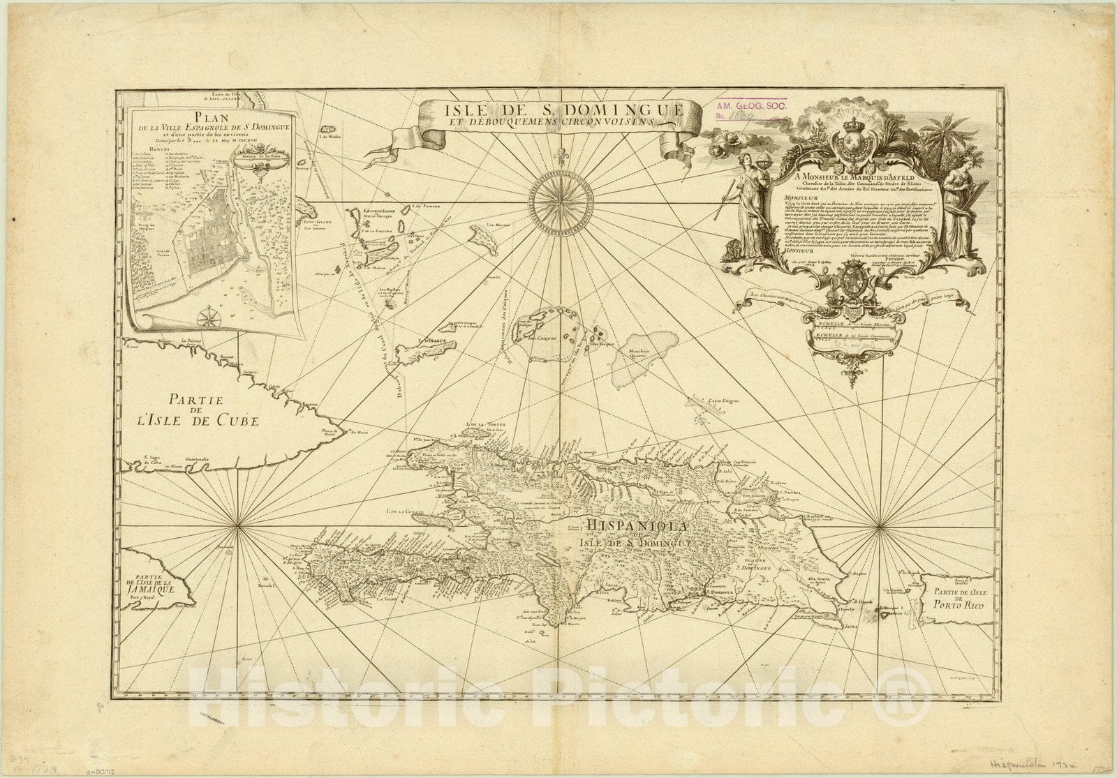 Map : Hispaniola 1724, Isle de S. Domingue et debouquemens circonvoisins , Antique Vintage Reproduction