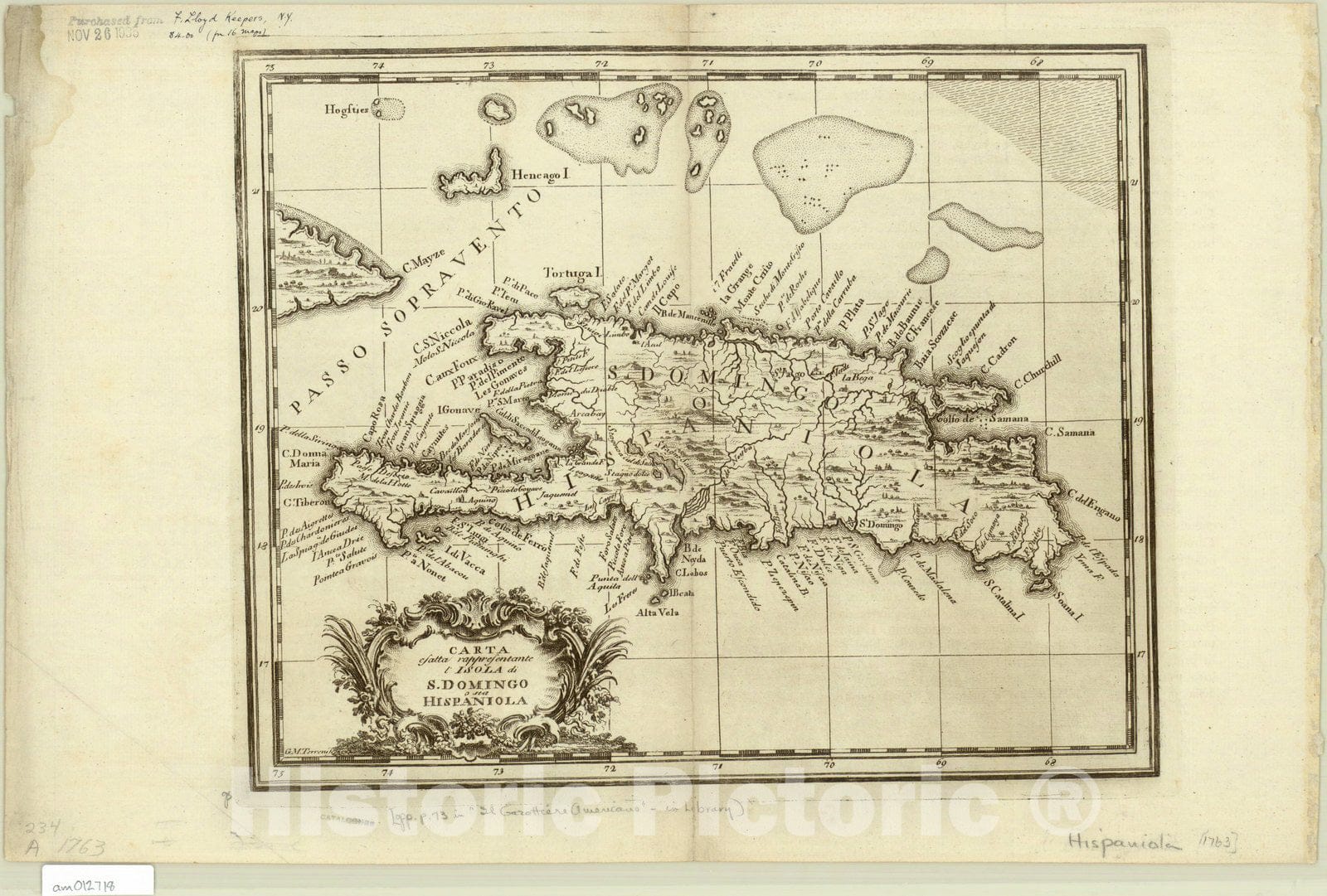 Map : Hispaniola 1763, Carta esatta rappresentante l'isola di S. Domingo o sia Hispaniola , Antique Vintage Reproduction