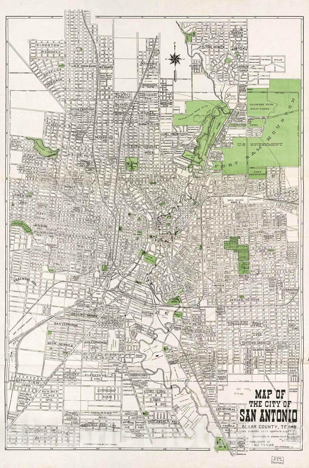 • .Historic 1924 Map - Map of The City of San Antonio, Bexar County: Including Suburbs Both North and South