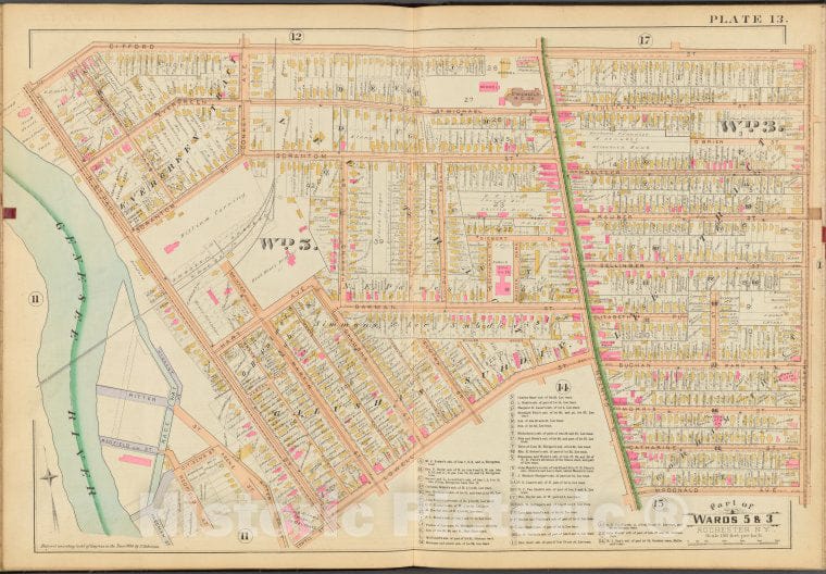 Historic 1888 Map - Rochester, Double Page Plate No. 13 [Map Bounded By Clifford St.