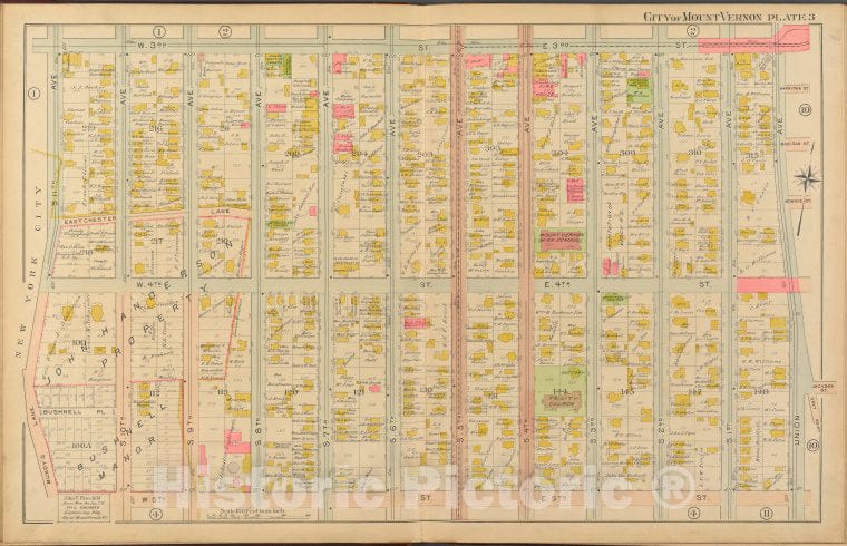 • Historic 1908 Map - Mount Vernon, Double Page Plate No. 3 [Map Bounded By W. 3Rd St - Vintage Wall Art