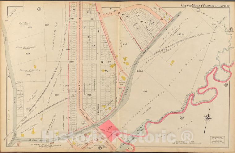 • .Historic 1908 Map - Mount Vernon, Double Page Plate No. 12 [Map Bounded By 7Th St, Vintage Wall Art