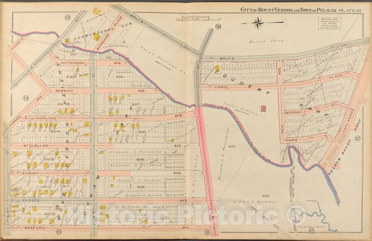 Historic 1908 Map - Mount Vernon, Double Page Plate No. 13 [Map Bounded By Wolfs La