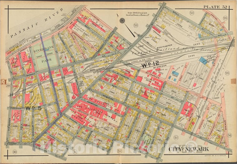Historic Map - 1911 Newark, New Jersey (N.J.), V. 2, Double Page Plate No. 52 [Brill St, Venue L, Ferry St, Van Buren St, Passaic River]