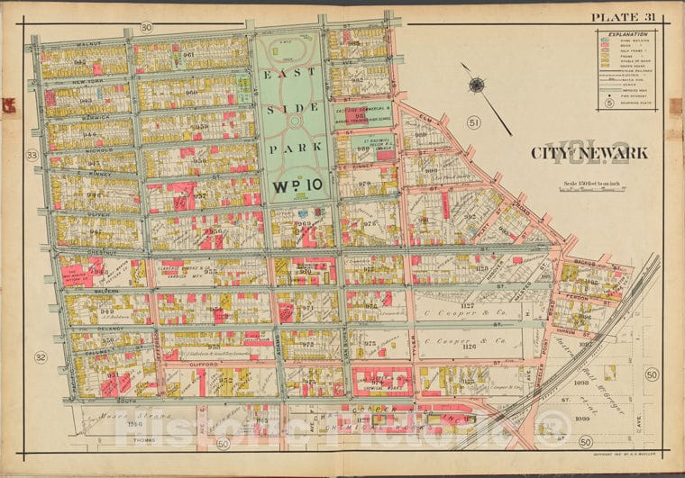 Historic Map - 1911 Newark, New Jersey (N.J.), V. 2, Double Page Plate No. 31 [Walnut St, Elm Rd, Backus St, Thomas St, Pacific St.]