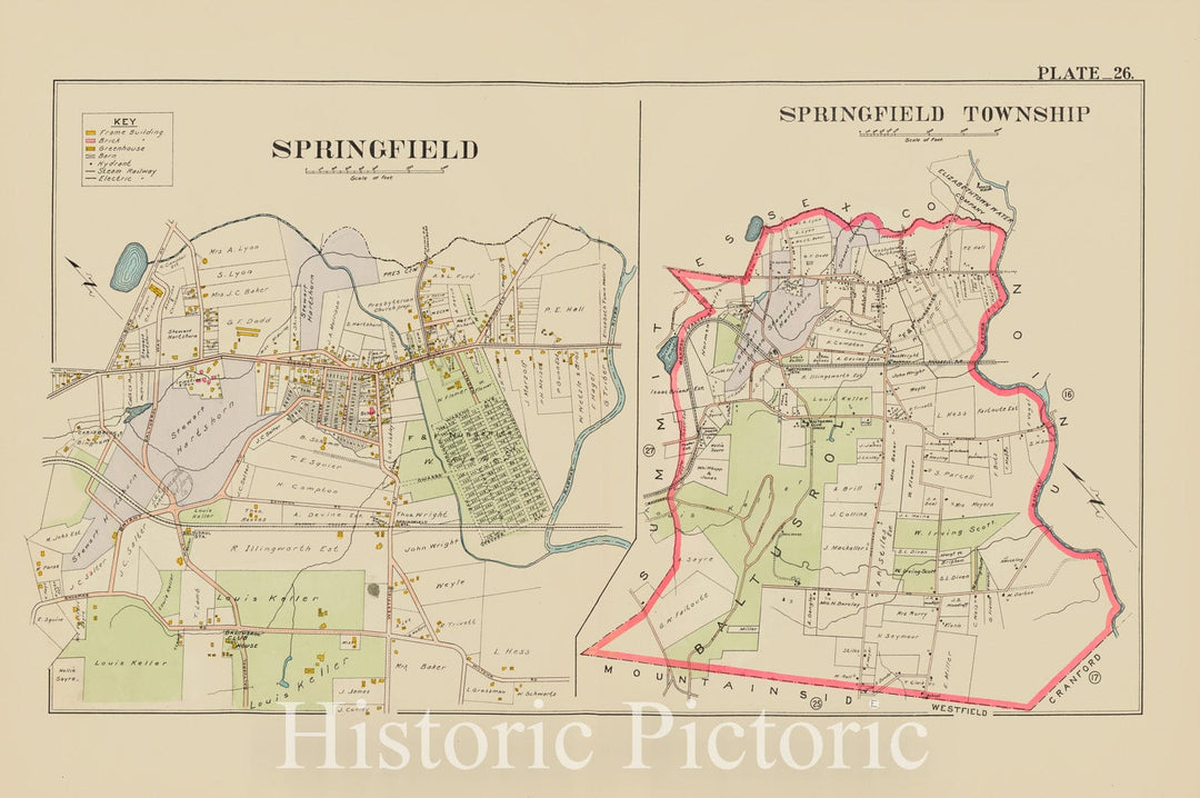 Historic Map - 1906 Union County, New Jersey (N.J.), 1906 Double Page Plate No. 26 [Map Of Springfield And Map Of Springfield Township] - Vintage Wall Art