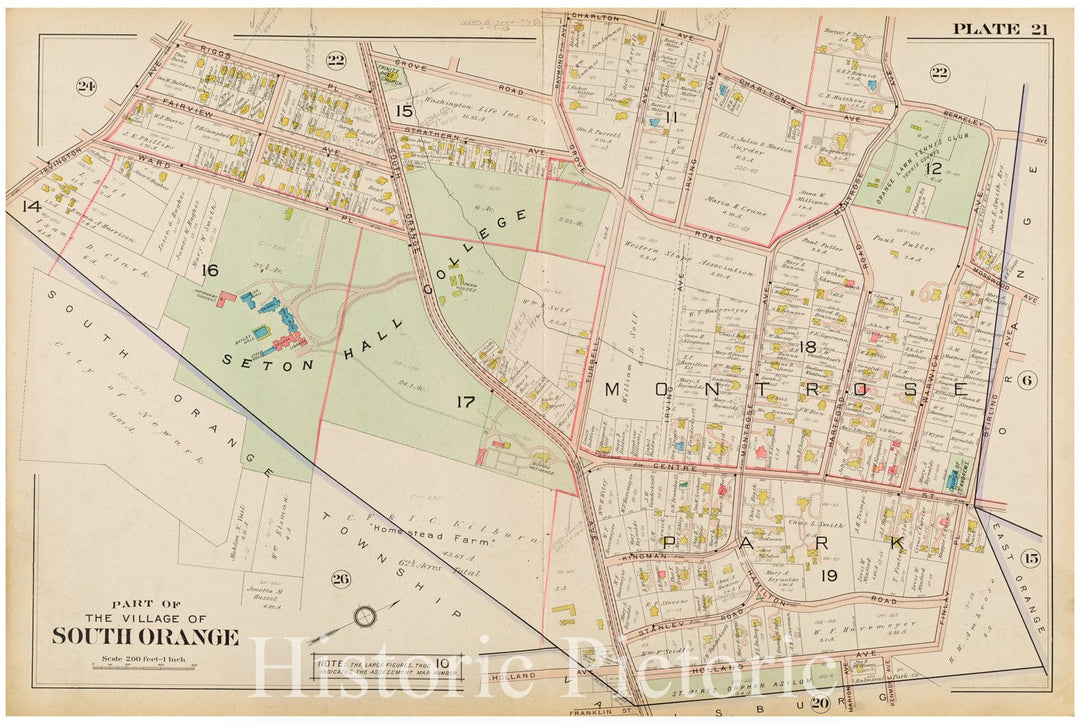 Historic Map - 1904 Essex County, New Jersey (N.J.), Village Of South Orange. Plate No. 22 [ Ridgewood Rd, Berkeley Ave, Charlton Ave, Grove Rd, Riggs Pl, 3Rd St. - Vintage Wall Art