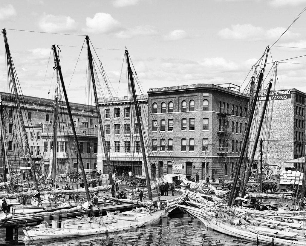 Baltimore Historic Black & White Photo, Oyster Luggers, c1905 -