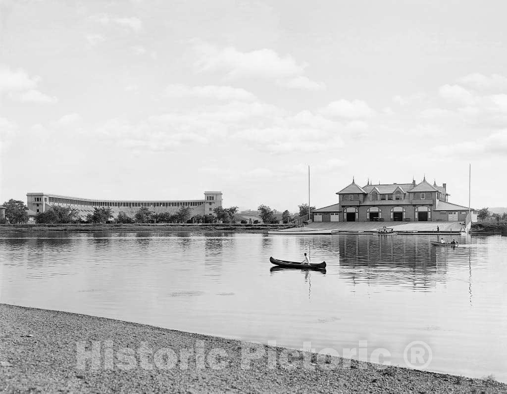 Historic Black & White Photo - Boston, Massachusetts - Harvards Stadium and Boathouse, c1915 -