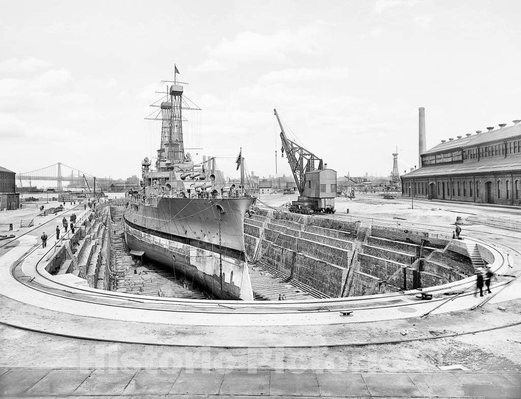 Historic Black & White Photo - Brooklyn, New York - Dry Dock at the Brooklyn Navy Yard, c1915 -