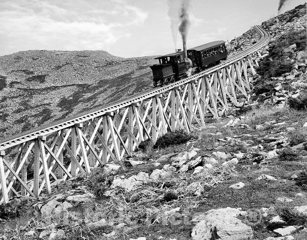 Historic Black & White Photo, Climbing Jacob's Ladder, Mount Washington Cog Railway, c1900 -
