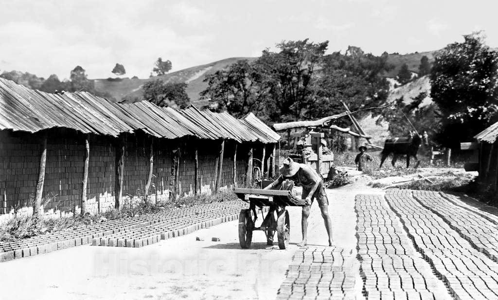 • Historic Black & White Photo - St. Johnsbury, Vermont - Making Bricks in St. Johnsbury, c1907 -