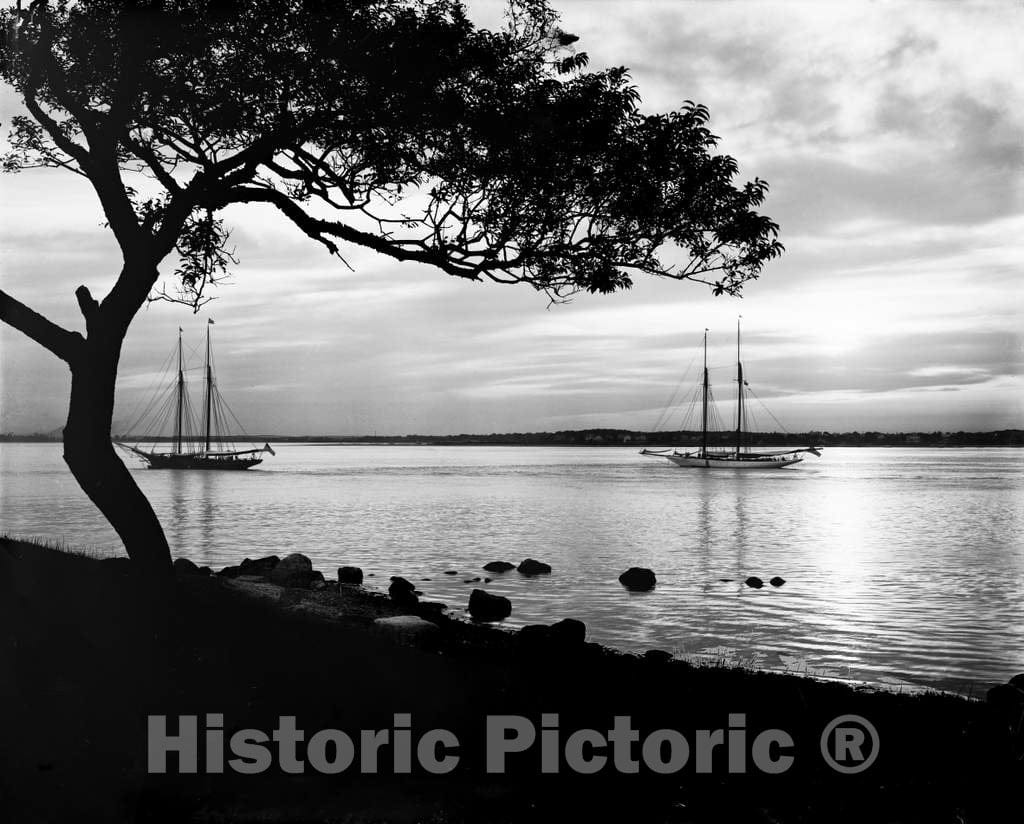Historic Black & White Photo - Long Island, New York - Sunset from Manhansett Hotel, Shelter Island, c1905 -