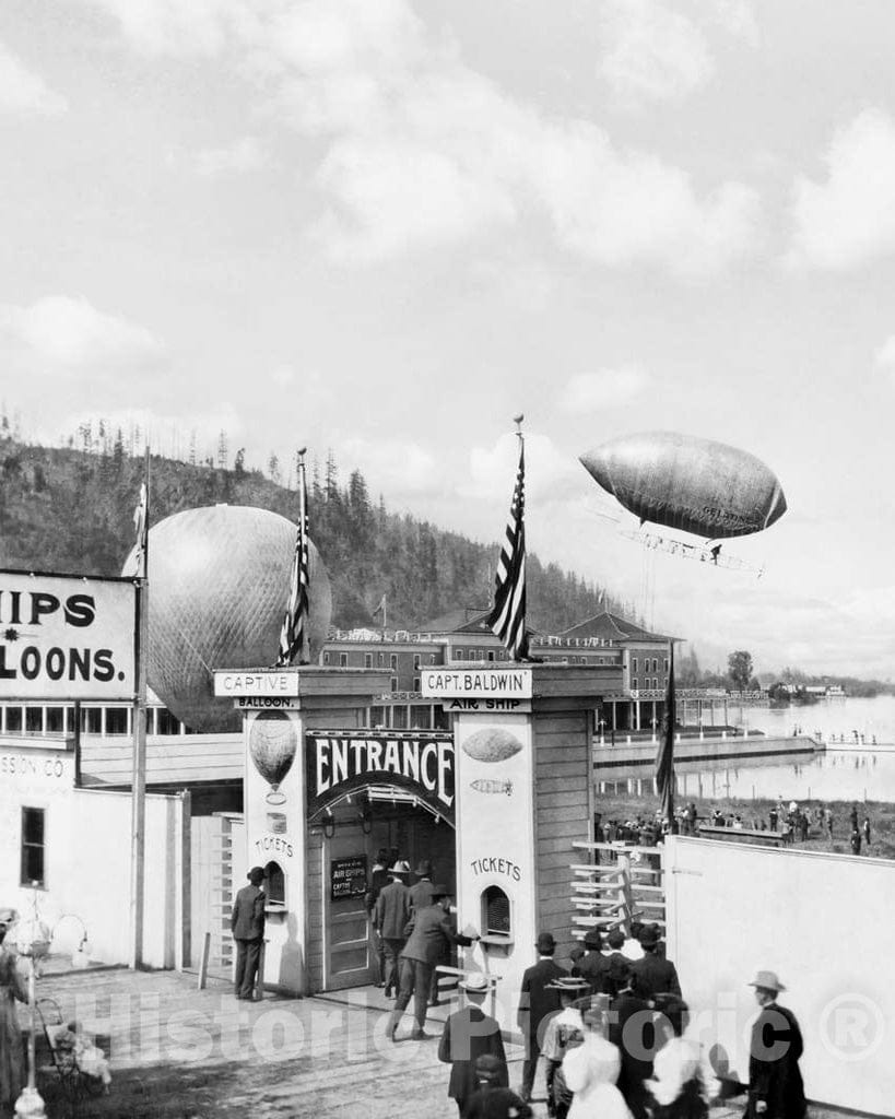 Historic Black & White Photo - Portland, Oregon - Baldwin's Airship at Lewis & Clark Centennial, c1905 -