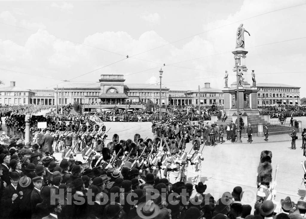 Historic Black & White Photo - Providence, Rhode Island - Artillery Parade at Exchange Place, c1903 -