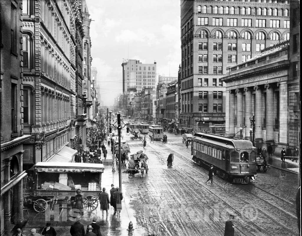 • .Historic Black & White Photo - Rochester, New York - Raining on State Street, c1910 -