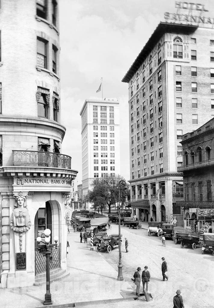 Historic Black & White Photo - Savannah, Georgia - Outside the National Bank of Savannah, c1910 -