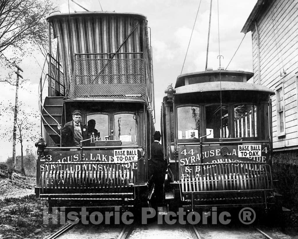• Historic Black & White Photo - Syracuse, New York - Summer Trolley Cars, c1900 -