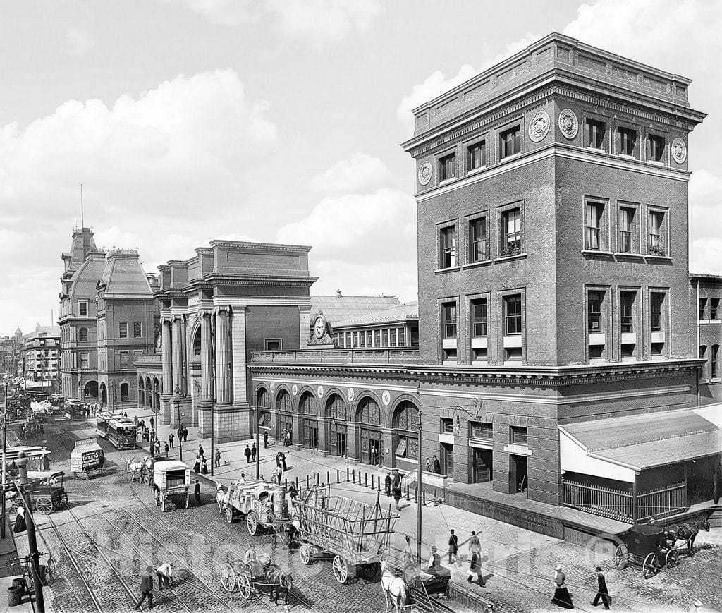 • Boston Historic Black & White Photo, North Terminal Station, c1895 -
