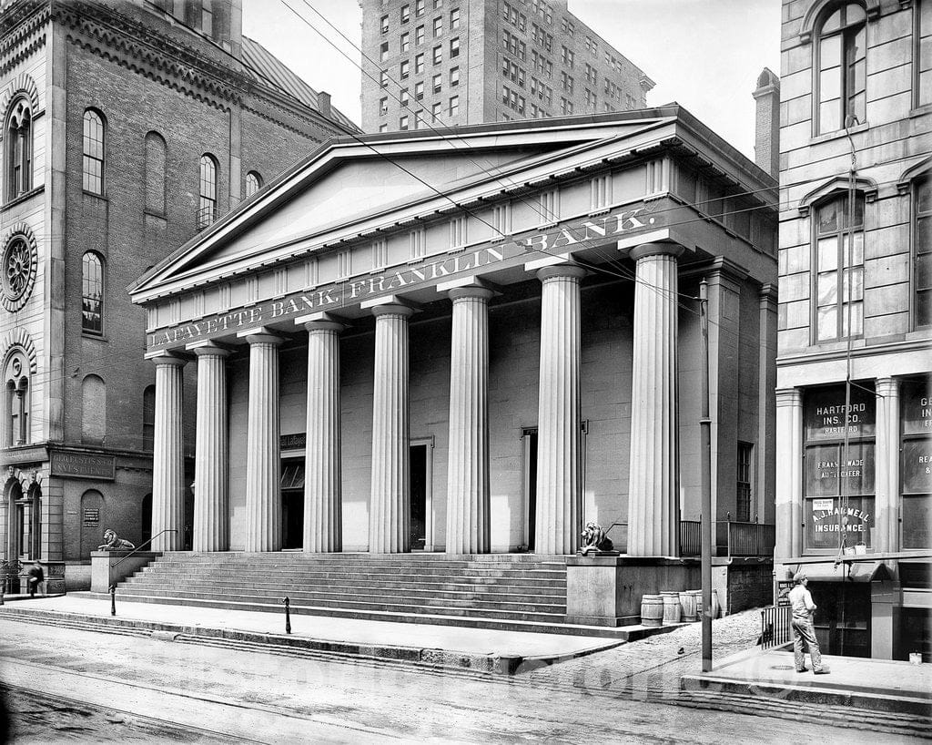 • Cincinnati Historic Black & White Photo, Lafayette and Franklin Banks on Third Street, c1903 -
