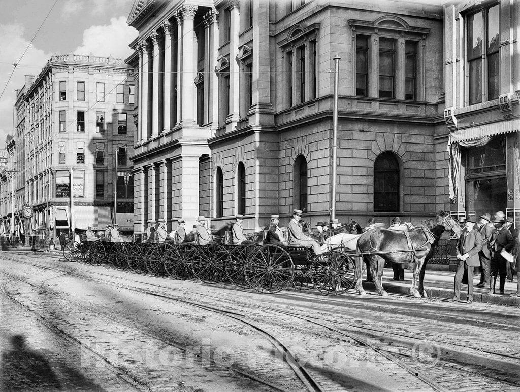 Denver Historic Black & White Photo, Horse-drawn Mail Wagons, c1900 -
