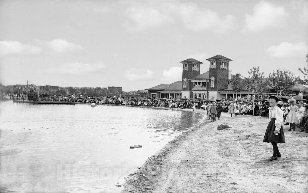 Denver Historic Black & White Photo, Outside the Pavilion on Ferril Lake, City Park, c1900 -