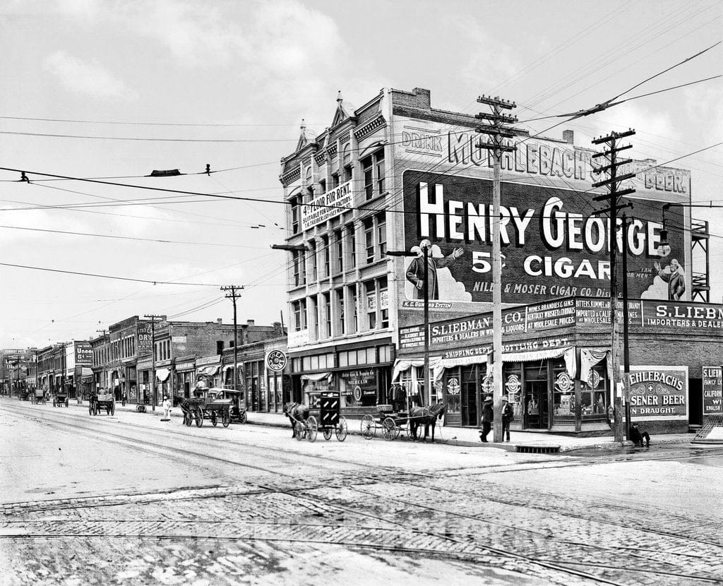 • .Kansas City Historic Black & White Photo, Looking Northeast from Grand Avenue & 18th Street, c1909 -