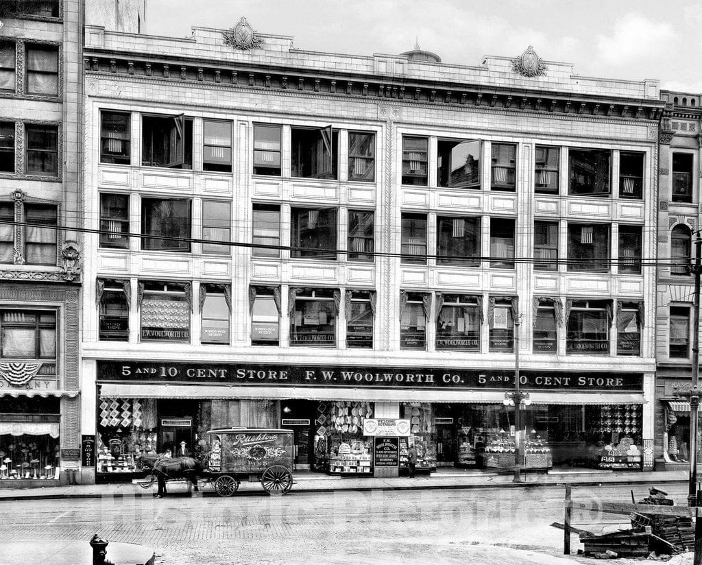 Kansas City Historic Black & White Photo, F.W. Woolworth Company, Main Street, c1900 -