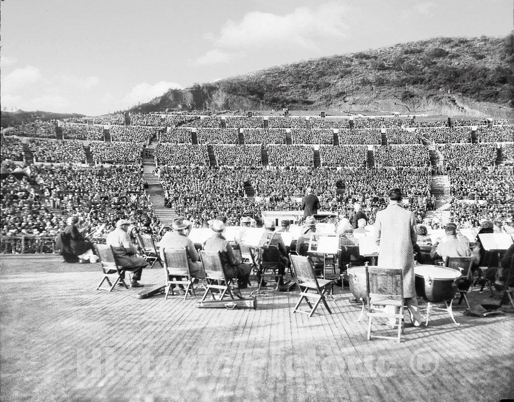 • .Los Angeles Historic Black & White Photo, Orchestra in the Hollywood Bowl, c1920 -