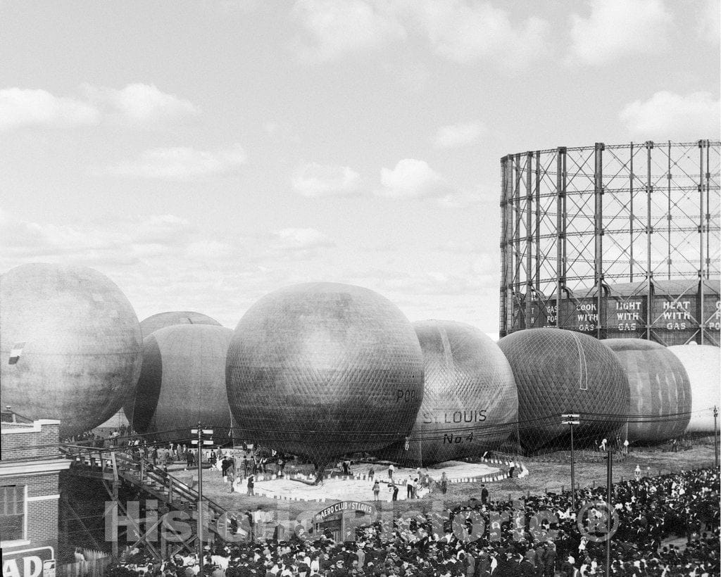 St. Louis Historic Black & White Photo, Centennial Balloon Race, c1909 -