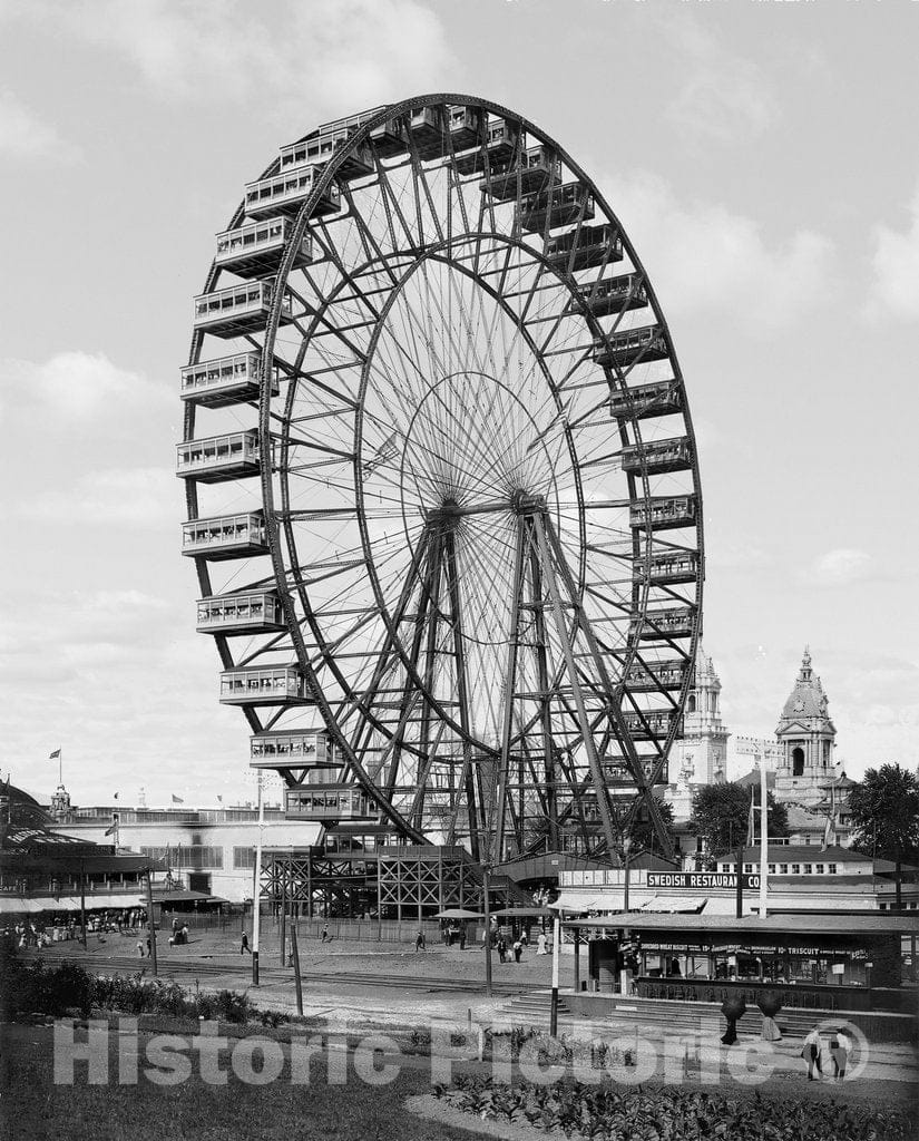 St. Louis Historic Black & White Photo, World's Fair Ferris Wheel, c1904 -
