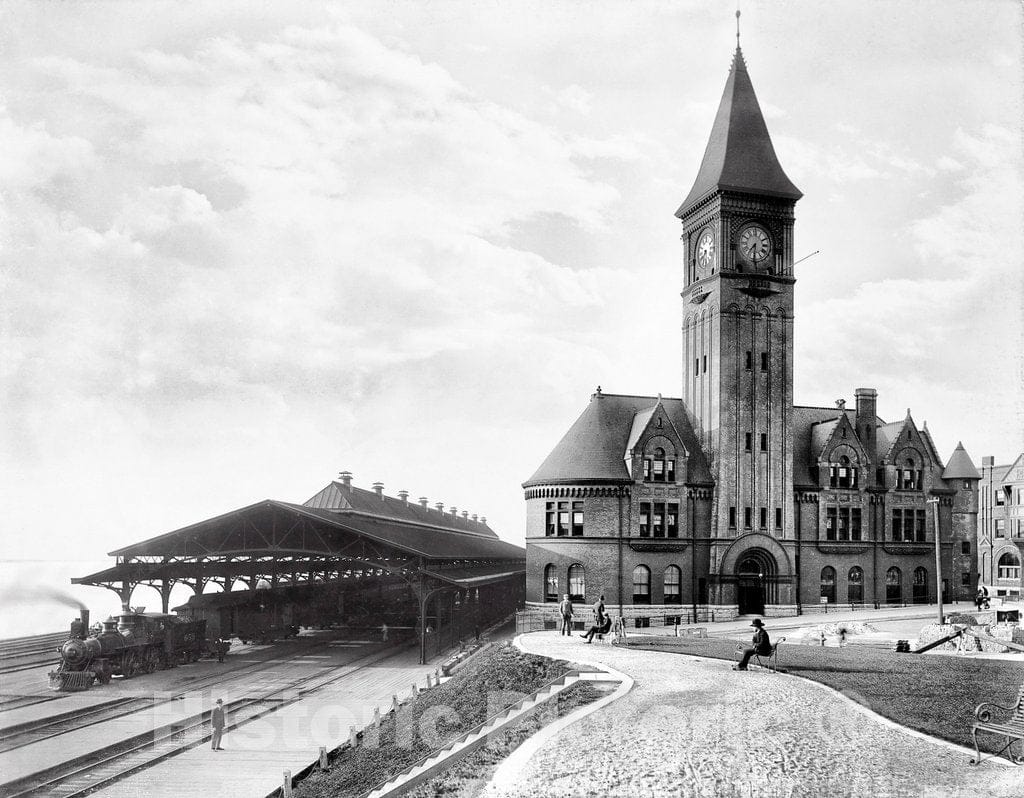 • Milwaukee Historic Black & White Photo, The Chicago & Northwestern Railway Station, c1900 -