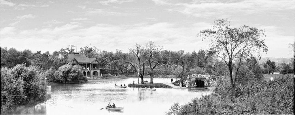 Milwaukee Historic Black & White Photo, On the Lake in Mitchell Park, c1900 -