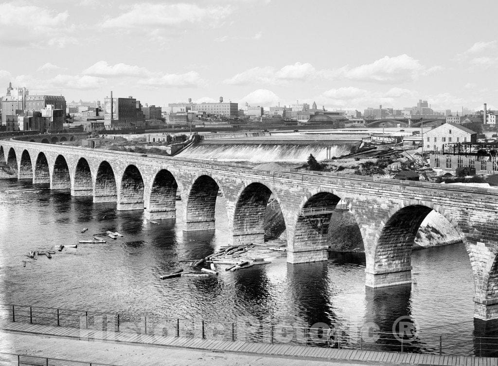 Minneapolis Historic Black & White Photo, St. Anthony's Falls, c1904 -