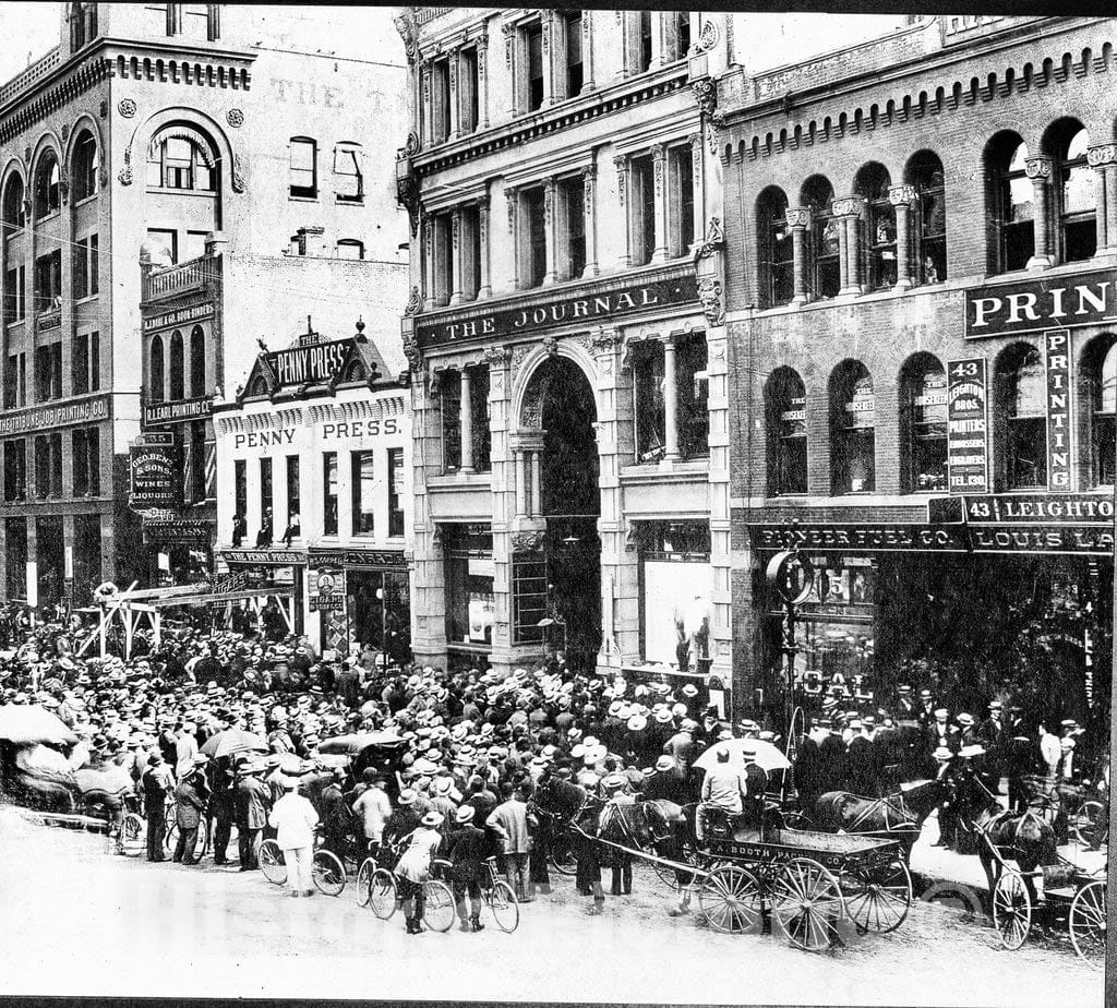 • .Minneapolis Historic Black & White Photo, Election Night on Newspaper Row, Fourth Street, c1897 -